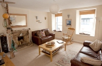 A renovated, 300 year old traditional cob barn offering ’upside-down’ accommodation for four. Sitting-dining room upstairs with exposed beams, bedrooms and bathroom downstairs. ..