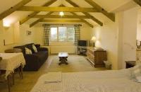 A large single storey barn conversion which may suit less-mobile guests. Fenced-in patio and garden opens out onto tea-room gardens and fields. Breakfast available by arrangement. Pub 1 mile..